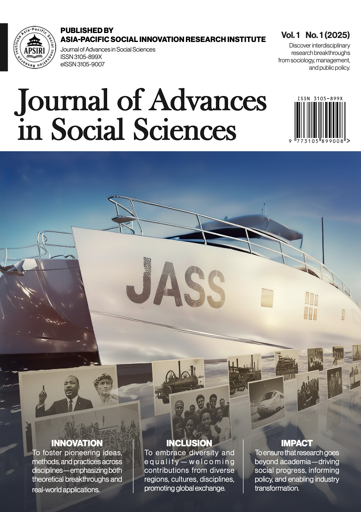 《Journal of Advances in Social Sciences》(简称 JASS)是由亚太社会创新研究院(Asia-Pacific Institute for Innovation, APSIRI)主办的国际性、开放获取、同行评审学术期刊。本刊已正式获得国际标准连续出版物号(ISSN),标志着在全球学术出版体系中取得了正式国际期刊资质。